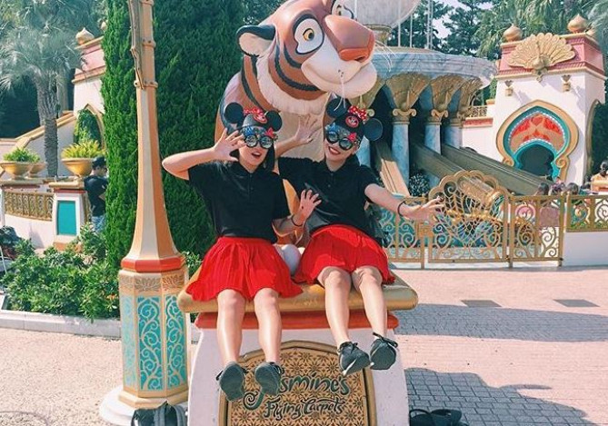 桐谷美玲 河北麻友子 これは目立つ ディズニー双子コーデに女子興奮 シネマトゥデイ